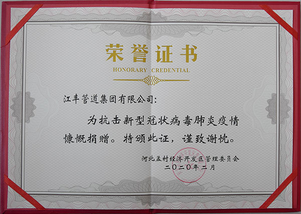 抗擊肺炎榮譽證書